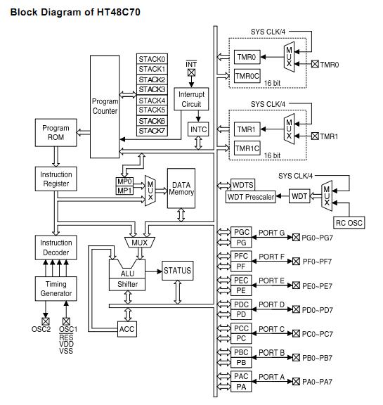 The HT48R12-A-0 is an 8-bit high performance RISC-like microcontroller, specifically designed for multiple I/O product applications. The HT48R12-A-0 is suitable for use in products such as remote controllers, fan/light controllers, washing machine controllers, scales, toys, and various subsystem controllers. The HT48R12-A-0 containd a halt feature to reduce power consumption.